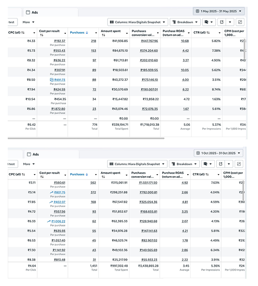 Within a few months, the difference was visible — both in performance and brand energy. By October, their monthly revenue had jumped to ₹9L+, with consistent results and a system that could now scale month after month.